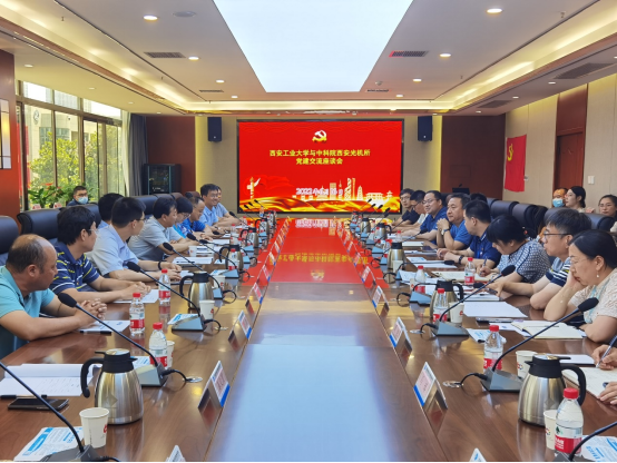 随后在座谈会和参观检测技术研究中心、先进光学元件试制中心过程中,两方代表进行了广泛的交流。太阳成集团tyc122ccvip代表介绍了西安工大“忠诚进取铸辉煌、精工博艺育英才”的“西工精神”和“把一切献给党”的“兵工精神”。详细讨论了党建工作在打造公司光学工程学科—国家国防特色学科、陕西省重点学科,测控技术与仪器、光电信息科学与工程—国家一流本科专业,电子科学与技术——陕西省一流本科专业的强力赋能作用,以及对“全省党建工作标杆院系”和“全省党建工作样板支部”的培育功能。并就党建互联、科研协作、学术交流、团队建设和人才培养等方面进行了深入讨论,双方表示要继续加强互利合作,推动共同快速发展。