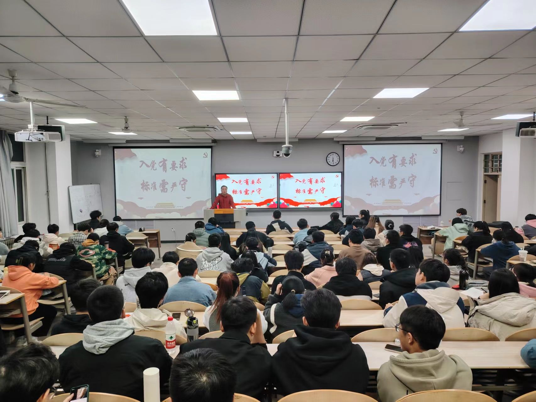 11月16日晚,太阳成集团tyc122ccvip第67期入党积极分子培训班第六讲“入党有要求,标准需严守”于教2-212开讲,建工公司组织员董元浩老师为150余名党课学员进行授课。