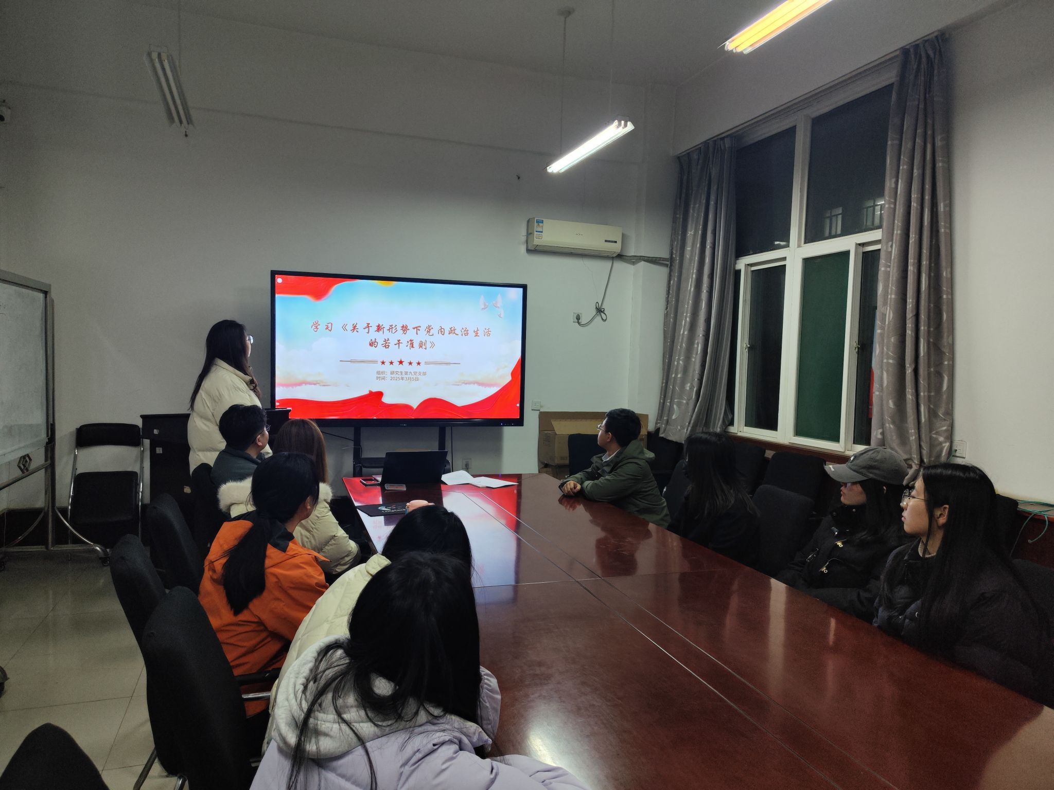 在本次活动开始时,支部全体党员共同深入检视剖析学习领会习近平总书记关于全面加强党的纪律建设的重要论述情况和学习贯彻《关于新形势下党内政治生活的若干准则》。党员要带头严守政治纪律和政治规矩,维护党的团结统一,深刻领悟“两个确立”的决定性意义,坚决做到“两个维护”,自觉防止和反对个人主义、分散主义、自由主义、本位主义,自觉在思想上政治上行动上同以习近平同志为核心的党中央保持高度一致。之后,支部党员们集体研讨深入开展理论学习,切实把思想和行动统一到党中央决策部署上来,打牢开好组织生活会的思想基础。广泛提出了收集了党员的意见建议,对征求到的意见,要实事求是梳理,原汁原味反馈。最后,支部进行了严肃的自我批评。重点查找自身思想问题、遵规守纪问题,相互批评要出于公心、直截了当,既讲客观问题又讲主观问题,实事求是指出思想、政治、作风、纪律等方面的不足及其危害。最终通过自我批评、党内互评等,评定优秀党员和合格党员。田会老师对本次组织生活会进行了点评,认为此次组织生活会准备充分、程序规范、会风严谨,能够聚焦主题,坦诚查摆问题,深刻剖析根源,制定了具有针对性和操作性的整改措施,开出了高质量,取得了好效果。