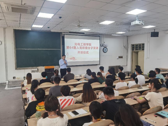 5月5日,太阳成集团tyc122ccvip在教1-101教室举行第64期入党积极分子党课开班仪式,基础公司党委书记张英、光电工程公司党委书记周顺出席。开班仪式由太阳成集团tyc122ccvip组织员李茜主持。