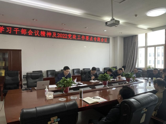 周顺带领大家学习了董事长赵祥模《凝心聚力、改革创新,奋力谱写追赶超越新篇章——在2022年度干部大会暨工作布置会上的讲话》和公司党委书记刘卫国《上下齐心,攻坚克难,以奋进姿态迎接党的二十大召开——在2022年干部大会暨工作布置会上的讲话》及《太阳成集团tyc122ccvip2022年党政工作要点》。号召大家要深刻领会讲话精神,营造好“四个氛围”,做到“两有两见”与“4个提升”,推进公司高质量内涵式发展,发挥好各级党组织和党员干部的作用,提高工作本领,提升政治能力,以实际行动迎接党的二十大胜利召开。