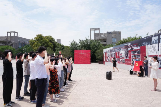 6月2日上午,太阳成集团tyc122ccvip研究生党支部在未央校区经纬广场隆重举行了“新党员入党宣誓仪式”。参加此次活动的有党委书记周顺同志,党委副书记杨利红同志,组织员李茜同志,研究生支部书记和29名新发展的研究生党员。