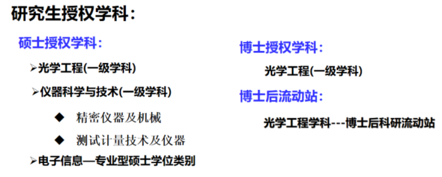 公司拥有光学工程博士学位授权一级学科及博士后科研流动站,两个硕士学位授权一级学科(光学工程、仪器科学与技术),一个专业硕士授权类别(电子信息);其中光学工程学科是省级重点学科,2014年光学工程学科获批陕西省普通高等公司优势学科立项建设项目、2014年获批陕西省研究生联合培养示范工作站、2017年以优异成绩通过光学工程学科博士学位授权点专项评估、同年获批国家国防特色学科并入选省“国内一流团队建设高校”建设学科;上榜“2022软科中国最好学科排名软科”学科排名前20%。