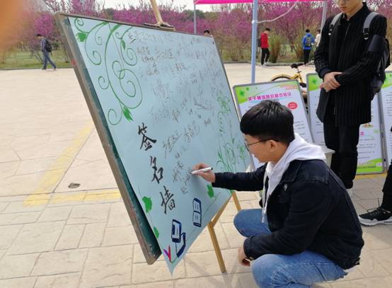 上午9点半,青年志愿者们在布置完毕活动现场后,利用课间和中午时间对过往员工发放结核防治宣传物品,让同学们更加深入的了解结核病相关知识及预防措施。活动中,光电青年志愿者前期准备的签名墙吸引了同学们的注意力,他们纷纷来到签名墙前,签上了自己的名字,同时也留下了防治肺结核,从自身做起的承诺。另外,校医院的老师们为支持活动的开展,无偿为同学们进行了血压测量,吸引了更多同学参与到活动中来。