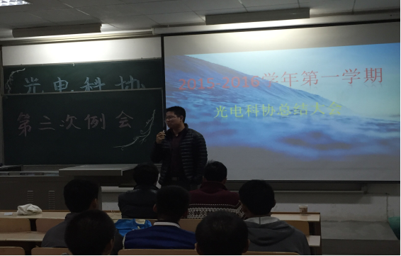 1119晚,公司科协在教2-303召开学期总结表彰大会,院团委书记李睿老师、科协主席团、各部门部长以及科协全体成员约 80人参加了本次大会。大会由院科协主席高祥主持。
