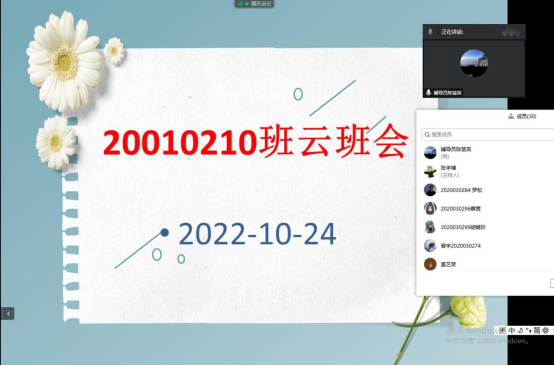 10月24日晚,太阳成集团tyc122ccvip20010210班组织召开了线上云班会,会议由辅导员陈慧英主持,班级全体员工参加了本次会议。