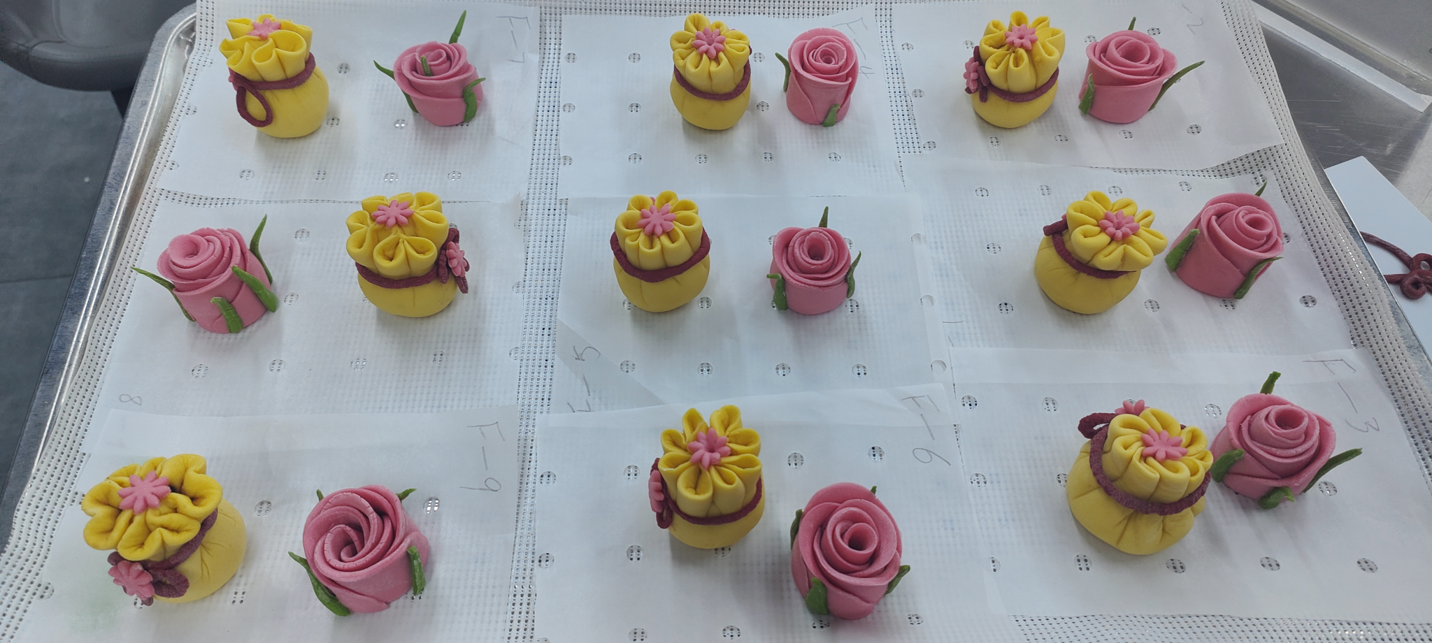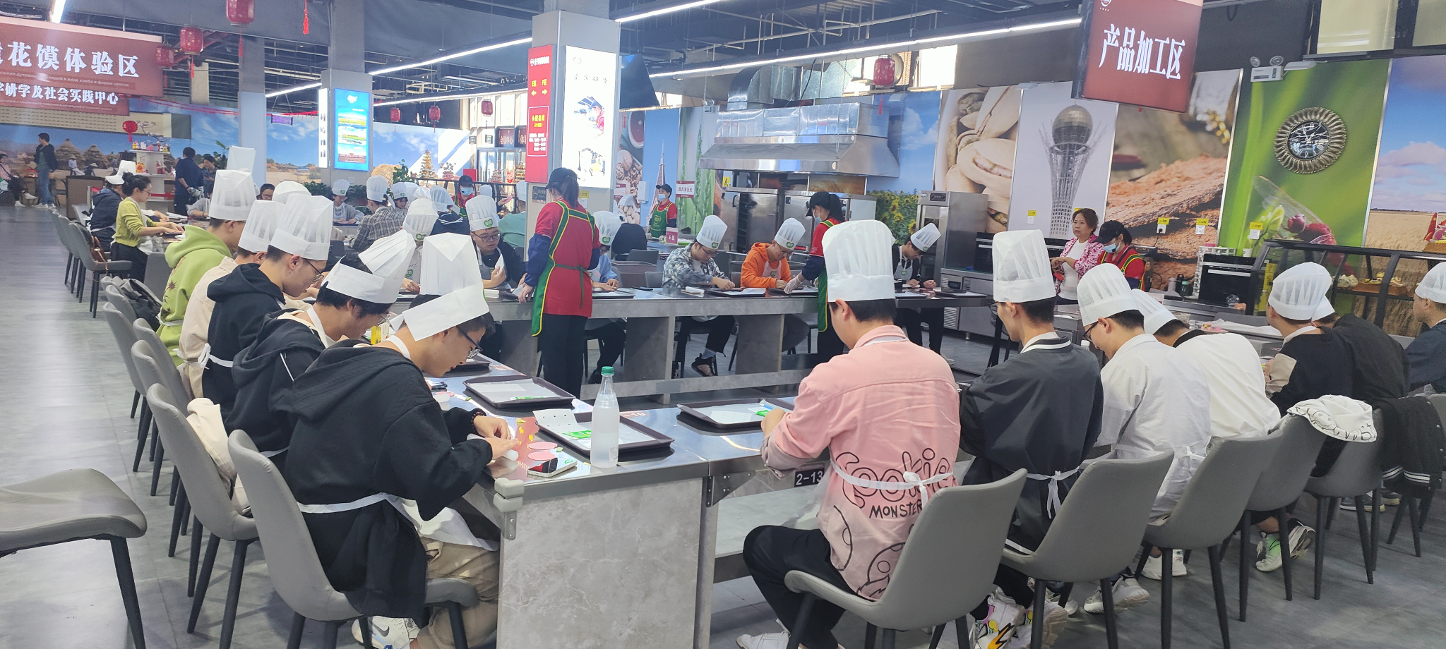 之后,同学们走进非遗花馍体验区学习非遗花馍技艺,在面点工艺师傅的指导下学习了揉、捏、压、剪等面食制作基本技艺,通过制作花馍体验民间艺术的魅力,感受中国饮食文化的传承与创新。