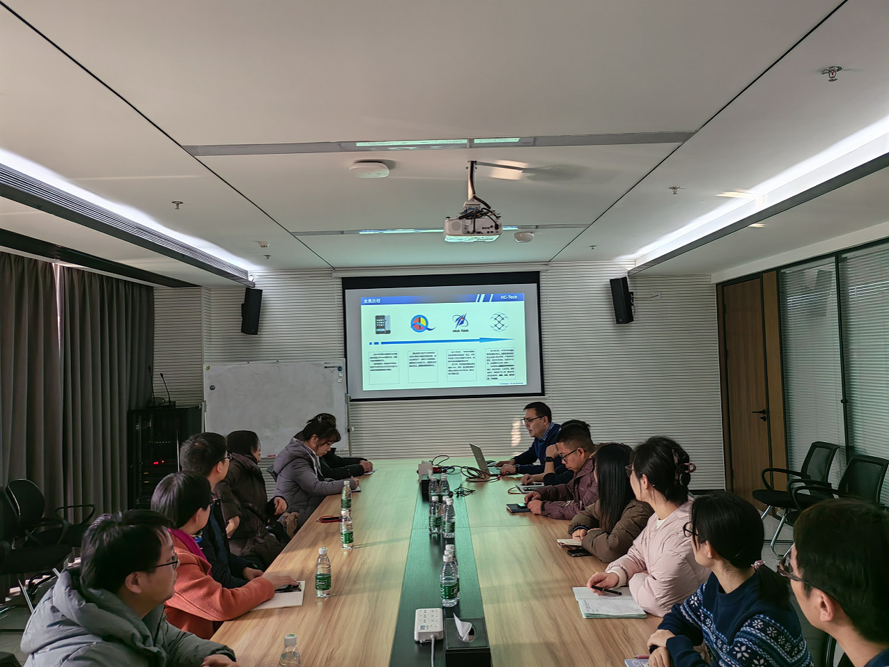 华天慧创科技(西安)有限公司户华晨副总经理对公司一行来访表示热烈欢迎。首先带领大家参观了企业的工作环境、生产车间、实验室等,详细了解了企业的发展历程、生产经营情况、市场布局、企业文化、员工福利等方面的情况。