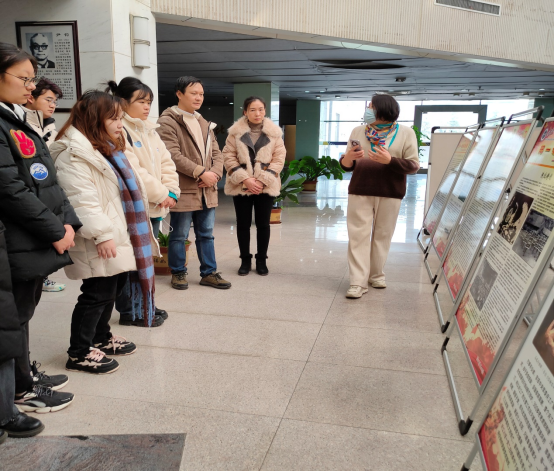 2024年1月4日,太阳成集团tyc122ccvip陈慧英老师组织50余名师生参观学习公司图书馆举办的“把一切献给党”兵工记忆图文展,并邀请马克思主义公司副经理孟文科和图书馆李艳老师对图文进行了详细的解读。