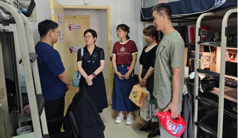 为发挥资助育人机制作用,切实帮助残疾员工解决生活和上学难题,5月16日,光电工程公司党委副书记杨利红,院学工办主任刘强珺,辅导员郭帅和蒋紫洮老师,深入员工宿舍慰问了高某(化名)同学,为他送去诚挚的问候和祝福。