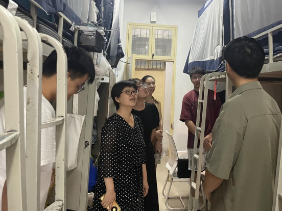 8月29日,光电公司党委副书记杨利红、员工工作办公室主任刘强珺及23级辅导员陈慧英一行三人深入2023级员工宿舍,看望返校员工,检查宿舍安全、卫生等情况。