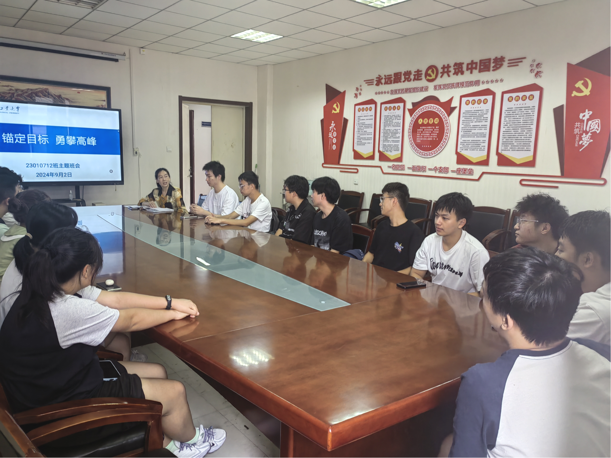 为帮助班级同学明确目标,做好自我学习规划,促进良好班风、学风形成,2024年9月2日辅导员陈慧英老师在工7-412会议室召开了23010712班主题班会。此次班会主题为“锚定目标 勇攀高峰”,意在于新学期激励同学们奋发向上。