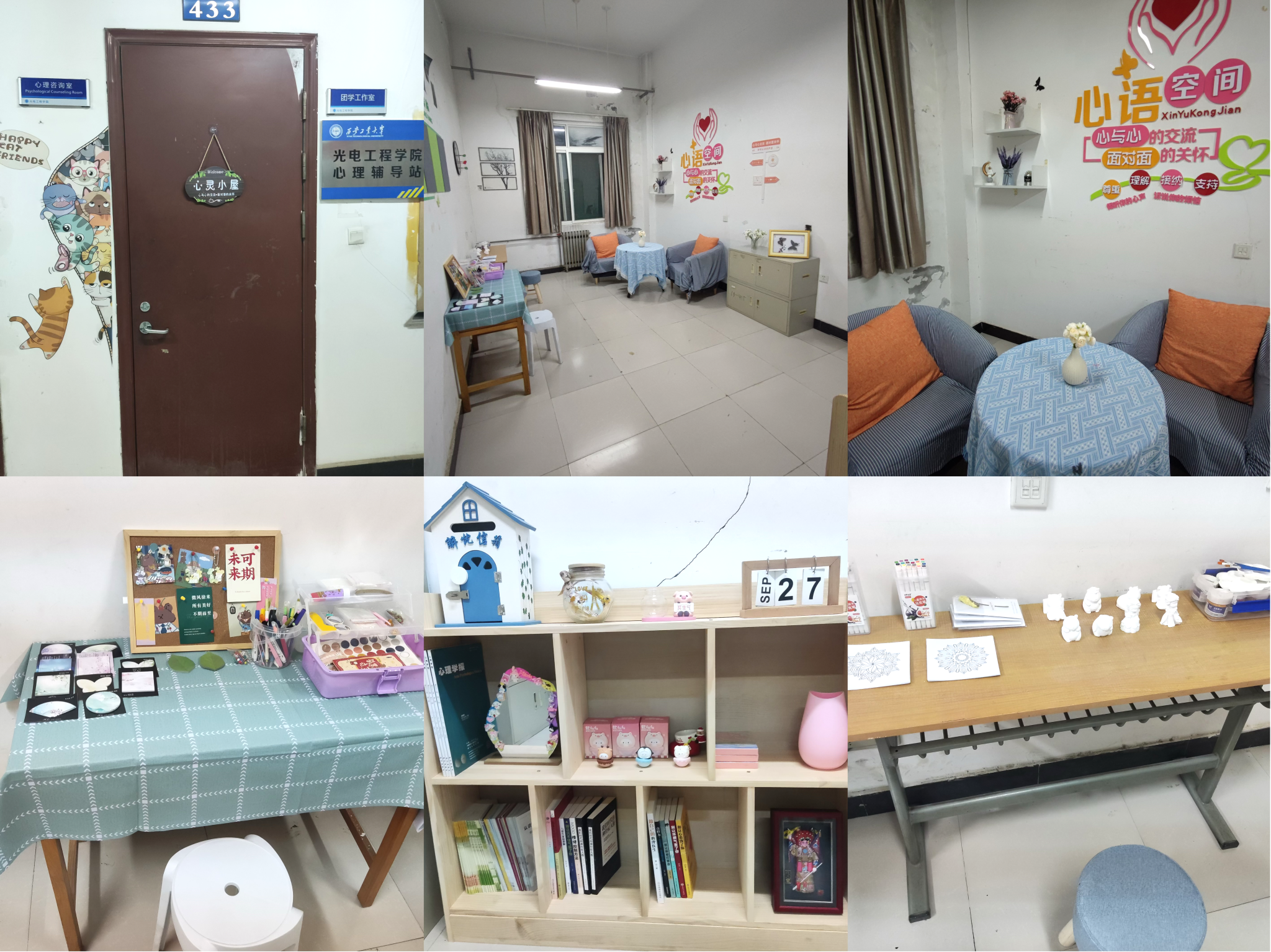 本院二级心理辅导站的策划和建设由公司党委副书记杨利红、心育员、全体辅导员、部分心理委员共同完成,针对院二级心理辅导站的功能定位、环境布置、设备配置等方面进行了深入的讨论,并制定了详细的实施计划。院二级心理辅导站位于工7-433室,装修风格简约温馨,功能丰富多样,包含谈话区、心理书籍阅读区、DIY制作区、书信写作区等。