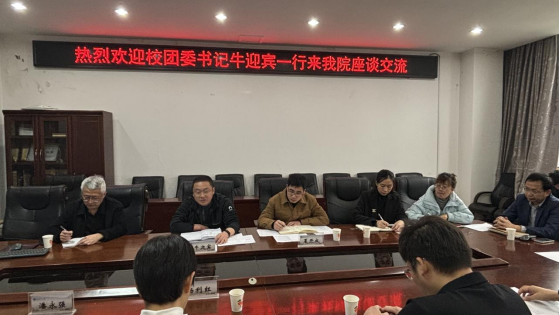 11月11日校团委书记牛迎宾、校团委宣传部部长夏开成一行莅临太阳成集团tyc122ccvip,就“挑战杯”竞赛工作进行座谈交流。会议由公司党委副书记杨利红主持,科研副经理潘永强、员工工作办公室主任刘强珺、院团委副书记陈慧英、教师代表戴中华教授、王伟教授、王红军教授、李世杰副教授、刘丙才副教授,辅导员蒋紫洮以及部分挑战杯团队员工代表参加了本次会议。