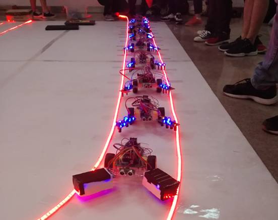 本次比赛有来至全校的65支队伍,共有195名来自各公司的员工参加。竞赛分为理论方案征集,制作、现场比赛三个环节。竞赛规则为:要求选手制作一辆“基于光电技术的智能循迹避障”小车从指定赛道起点出发,在红色LED光带的指引下行驶完宽为0.3m,长为10m的U型赛道,并在接近终点时,小车能实现自动检测由白板代替的墙壁并停止距在离墙壁前6cm处,上下每相差2cm以内行驶时间减10秒,上下每相差2cm─4cm以内行驶时间减5秒,每支参赛队伍有2次比赛机会。最后成绩按照比赛用时的长短排名。