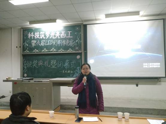 12月13日,由公司团委主办,科协承办的第六届“科技筑梦,光亮西工”LED灯制作竞赛颁奖典礼暨闭幕式在教1-201举行。公司党委副书记陈彤,科协指导老师蔡荣立、李睿出席闭幕式,应邀参加此次闭幕式的还有校团委宣传部部长黄晓龙老师,各院科协主席团成员。