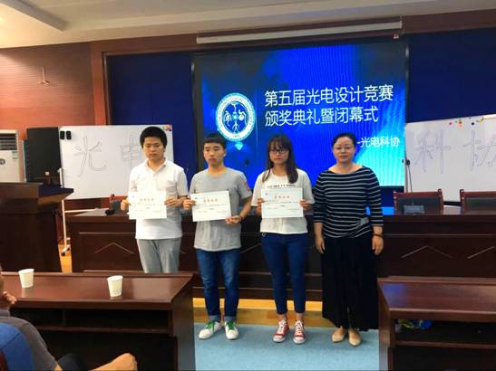 5月31日下午5点,由公司团委主办、院科协承办的第五届光电设计竞赛颁奖典礼暨闭幕式在工6-402隆重举行。公司经理高明、党委副书记陈彤、副经理潘永强、团委书记李睿、科协指导老师蔡荣立参加了本次颁奖典礼。颁奖典礼由公司员工邓小红、赵旗主持。