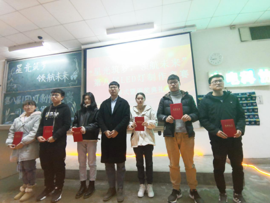 首先,大会进行评选环节,由每支参赛队伍用一分钟对作品进行展示,评委根据评分准则对每个参赛作品进行打分,工作人员根据平均成绩进行排名。本届大赛历时一个多月共计有462组来自公司各个公司的1200余名同学参与,经过灯光节的展示和两轮评比,最终选出一等奖3组,二等奖6组,三等奖15组,优秀奖26组,最佳创意奖1组,共51组获奖作品。活动中,团委书记孙君宣读了获奖名单,他对获奖选手表达了祝贺,对于此次竞赛的成功举办给予高度评价,并表示公司将继续为员工的科技活动提供最大的支持与帮助,对明年的比赛提出了更高的希冀。接着进行颁奖环节,由蔡荣立副教授,孙君老师,朱先彬老师依次为获奖选手颁奖并合影留念。最后,现场嘉宾与所有参赛选手和科协全体成员合影留念。至此,第八届“星光筑梦,领航未来”LED制作竞赛闭幕式圆满落幕。