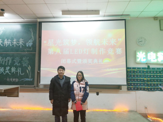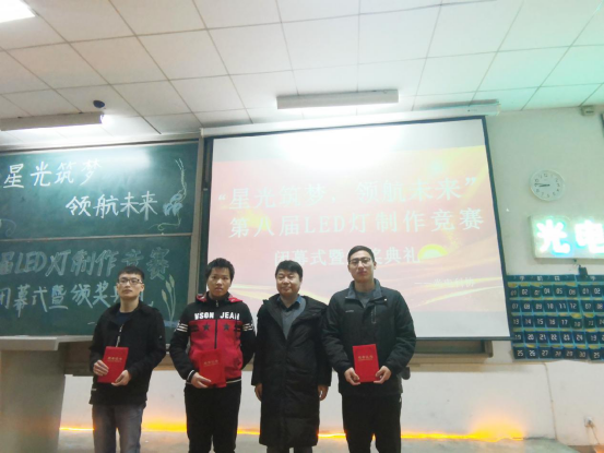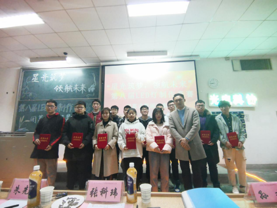 12月9日,由公司团委主办,院科协承办的第八届“星光筑梦,领航未来”LED灯制作竞赛颁奖典礼暨闭幕式在教1-202成功举办。参加闭幕式的有太阳成集团tyc122ccvip科学技术协会指导老师蔡荣立,太阳成集团tyc122ccvip团委书记孙君,2016级辅导员朱先彬及光电科协主席团成员。闭幕式由科普部副部长李常青主持。
