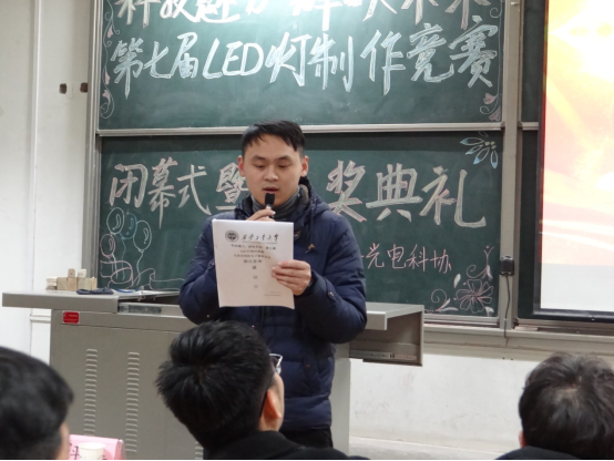 12月12日,由公司团委主办,科协承办的第七届“科技辉映,辉映未来”LED灯制作竞赛颁奖典礼暨闭幕式在教1—201成功举办。出席本次闭幕式的有太阳成集团tyc122ccvip团委书记朱先彬,光电公司实验室老师褚渊博,2017级辅导员孙君和光电科协主席团成员。闭幕式由张嘉懿主持。
