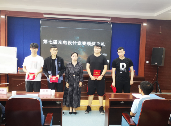 6月27日,第七届光电设计竞赛颁奖典礼在工6-402举行。公司党委副书记陈彤、团委书记朱先彬、2017级辅导员孙君应邀出席典礼,科协全体干事及所有参赛队员也参加了典礼。颁奖典礼由秘书部部长刘宝怡主持。