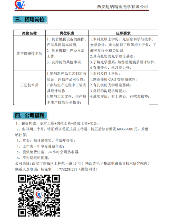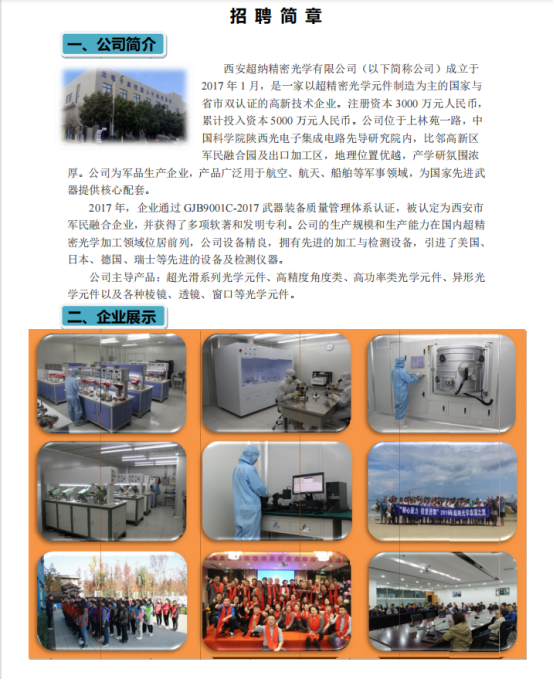 西安超纳精密光学有限公司招聘