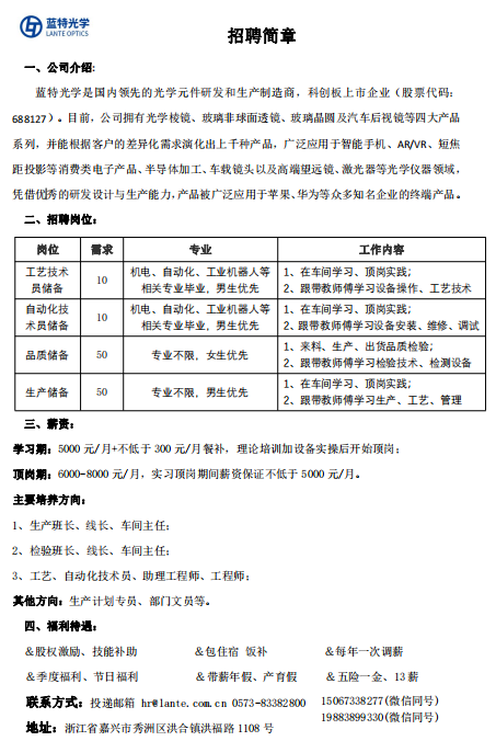 蓝特光公司园招聘(9月14日 教2-104)