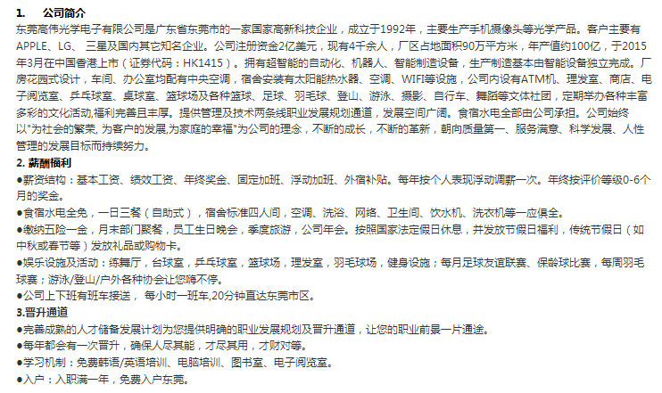 东莞高伟光学电子有限公司(2023年10月23日 10:30 ,老员工活动中心215)