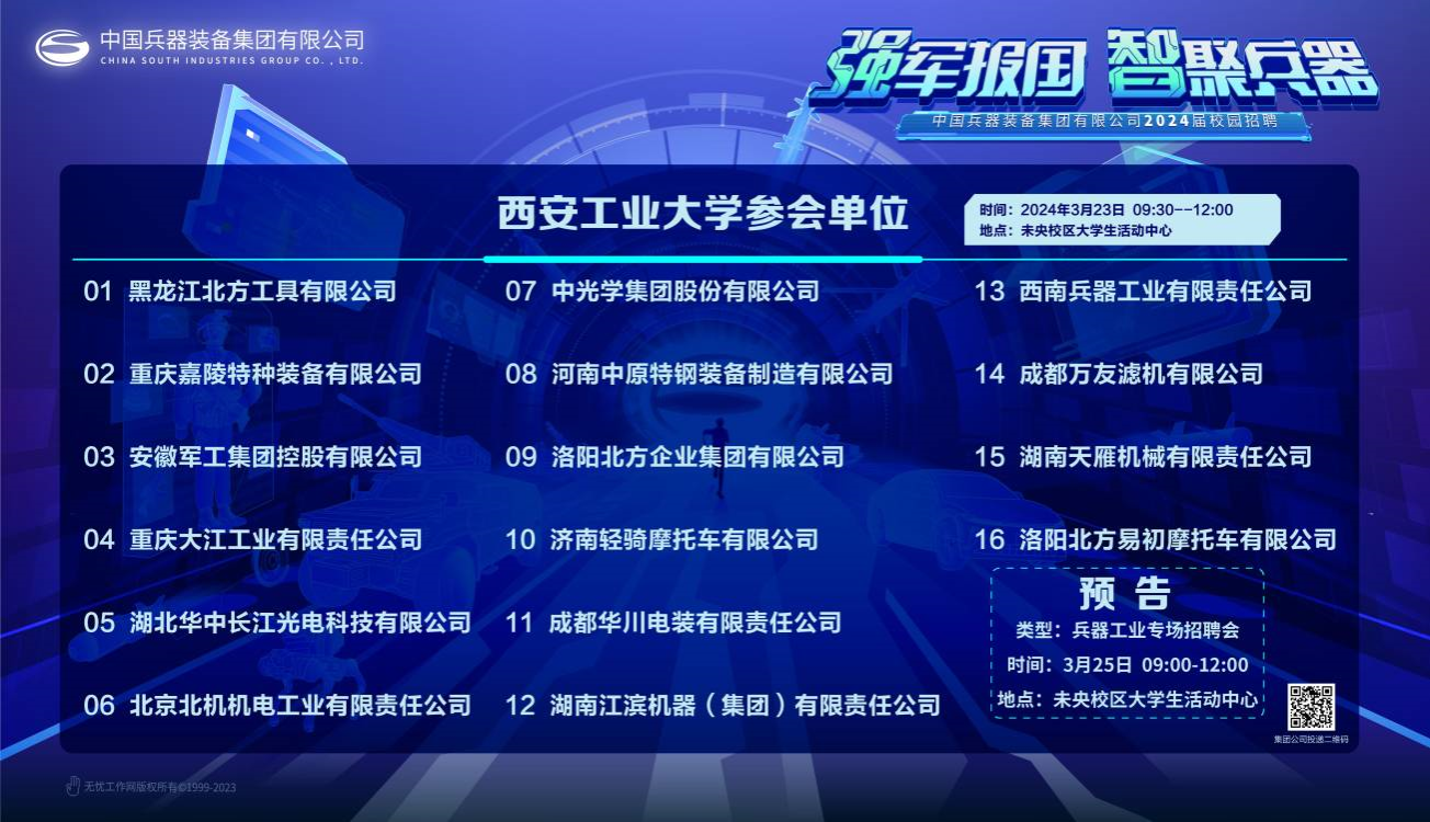 中国兵器装备集团有限公司(3月23日9:30-12:00未央校区老员工活动中心)