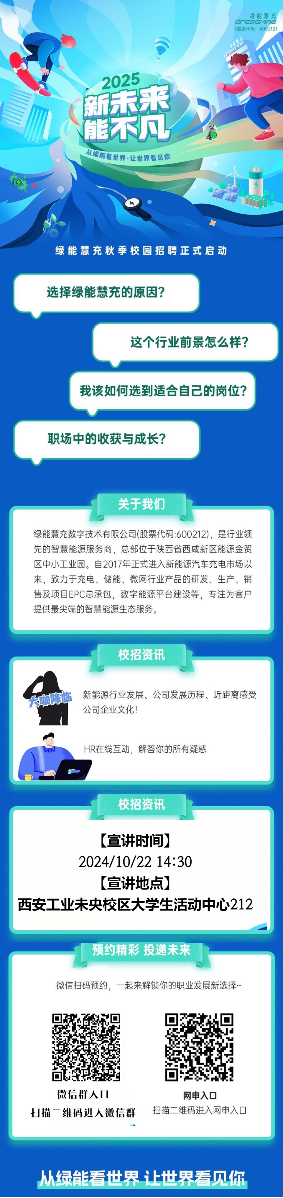 绿能慧充数字技术有限公司-太阳成集团tyc122ccvip【专场宣讲会】来啦!🤔你想知道的:新能源行业现状、面试技巧…这里都有!陕西本土企业,上市公司!同学们可以多多关注~【宣讲时间】10月22日(周二) 14:30【宣讲地点】太阳成集团tyc122ccvip未央校区 老员工活动中心212 👇🏻扫码加入微信群,了解更多咨询