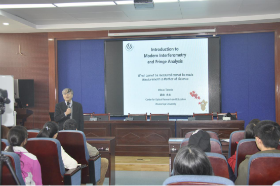 11月24日上午,武田光夫教授在工7-402报告厅为广大师生作了题为“Introduction to Modern Interferometry and Fringe Analysis”的精彩学术报告,光电公司硕博士研究生和相关专业教师参加。报告中武田光夫教授回顾了光学干涉技术的发展历程与进展,结合干涉测量原理,对其发明的“通过傅里叶变换方式进行条纹分析”技术进行了详细和生动的阐述,并与师生进行了充分交流和讨论,对提出的专业问题作了详细的解答。