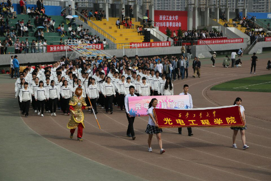 在运动员入场式中,踏着运动员进行曲,公司的方阵徐徐走来,队前面有金猴兆禧,锣鼓喧天,方阵前面的100名同学以饱满的热情,迈着整齐的步伐,喊着嘹亮的口号,和老师们一起精神饱满地走过主席台,向大家展示了光电师生的精神风采。运动会中,一篇篇来至公司的通讯稿给运动员加油打气。员工运动员顽强拼搏,发扬奥运精神,赛出了风格,赛出了水平,其中15010107班王朝晖获得男子跳高第二,14010108班王恒飞获得男子跳远第三,15010106班马正伟获得男子3000米第五,员工团体总分获得第六。老师运动员也不甘示弱,齐心协力认真的完成每一个项目,教工赶羊接力获得第一,教工男子跳远李睿老师获得第四,教工团体总分获得第三。在师生珠行万里的项目中,老师和员工齐心协力,通过共同的努力,获得了该项目的第一名。公司同时获道德风尚奖。