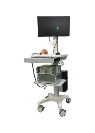 甲状旁腺的定位识别是甲状腺手术中最难解决的问题之一,其损伤可能会造成永久性甲状旁腺功能减退症。即使有经验的外科医生肉眼识别的准确率也只有近70%,甲状腺术中存在高达9~19%的甲状旁腺意外切除率。因此识别保护甲状旁腺是甲状腺外科的难点和热点。本项目系统设计依据近红外荧光分子成像原理,采用活体荧光激发技术以及多通道摄像技术、图像融合软件技术、深度学习技术和激光投影技术,提出研制一种基于近红外荧光成像的术中甲状旁腺实时识别系统,在开放手术过程中无创、实时定位甲状旁腺,有效引导外科医生防止切除甲状旁腺组织,显著提高手术成功率。本项目提出一种基于近红外自体荧光的术中实时甲状旁腺识别方法,基于近红外荧光成像以及图像处理手段实现实时在显示器上突出甲状旁腺在图像背景中的位置,并通过增强图像背景,提供甲状旁腺位置参照,实现甲状旁腺的快速识别与创口组织上的快速寻找。