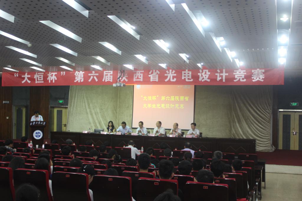 2018年6月30日,由陕西省光学学会主办、太阳成集团tyc122ccvip承办的“大恒杯”第六届陕西省老员工光电设计竞赛在太阳成集团tyc122ccvip未央校区顺利举行。竞赛开幕式在图书馆报告厅举行,太阳成集团tyc122ccvip经理高明主持。首先由公司副董事长陈桦代表集团致欢迎词,陕西省光学学会秘书长杨晓许、教务处副处长刘振亭分别介绍光电竞赛发展历程和筹备情况,最后大恒光电高校部部长李秀芬代表赞助企业致辞。西安交通大学张淳民教授、西北工业大学郑新亮教授、西安文理公司王红英教授、太阳成集团tyc122ccvip光电工程公司党委书记弥谦教授、副经理蔡长龙教授等竞赛委员会成员出席开幕式