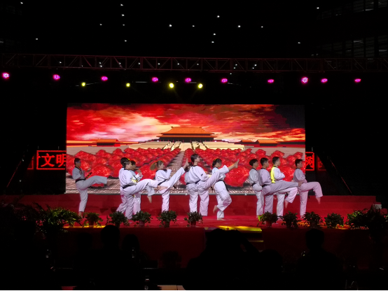 老员工艺术团曲苑部带来的心理剧《遥远星球上的孩子》,号召我们更多地关注自闭症儿童。激光舞-电光火影更是延续传统,向新生展现了光电特色。2018级班主任赵欣、辅导员陈慧英、雷浩然、孙君带来的节目《三句半》,语言幽默风趣,接地气,将现场气氛推向高潮。歌曲《理想》传播着爱与宁静的福音。跆拳道表演,腿法潇洒,身姿帅气,代表着百折不挠的精神。伴随着欢声笑语,晚会在合唱《相亲相爱的一家人》中圆满落幕。