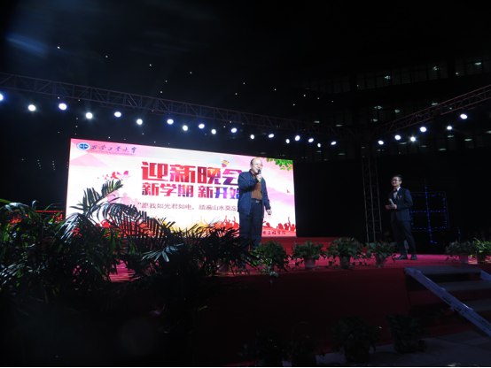 华灯初上,大屏幕上开始播放公司领导和新生辅导员对2018级新同学诚挚的祝词短片。在热情洋溢的欢呼声中,舞蹈《ei ei》拉开了本场晚会的帷幕。