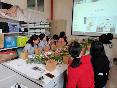 接着大家在老师的带领下走进了花艺世界,用心灵与花对话,并亲身体验插花的乐趣,感受鲜花在自己手中绽放的浪漫。