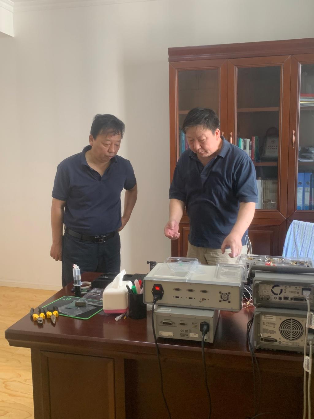 在校聘专家郑刚教授家中,郑老师还向高明经理介绍了近期的科研成果,并就后期的研究成果进行了交流。因疫情封校原因,郑刚教授将部分实验设备搬回家中进行实验测试,高经理对郑刚教授兢兢业业的工作态度表示钦佩,并表示公司会大力支持郑刚老师的科学研究工作,也感谢郑刚教授对公司教学、科研、人才培养作出的贡献。