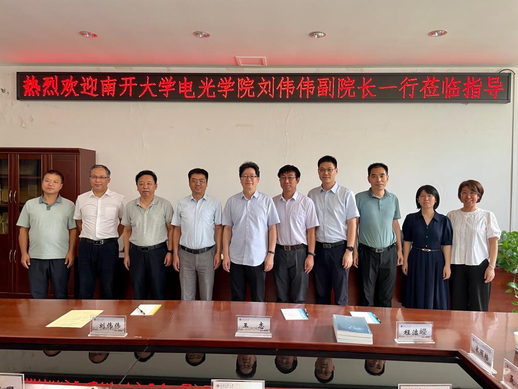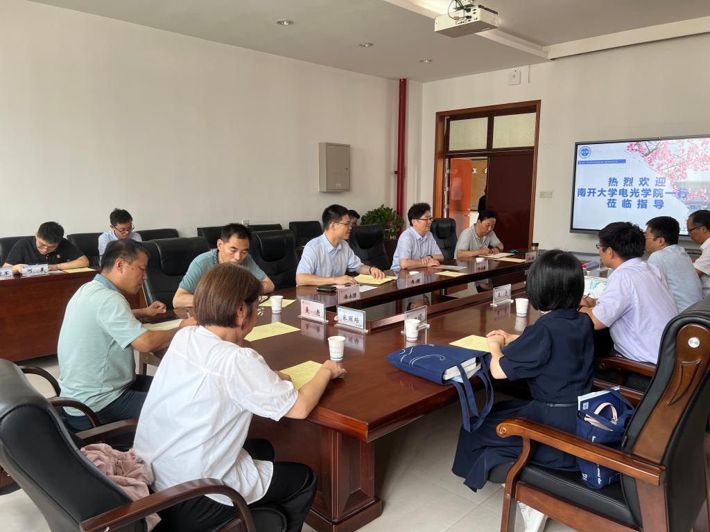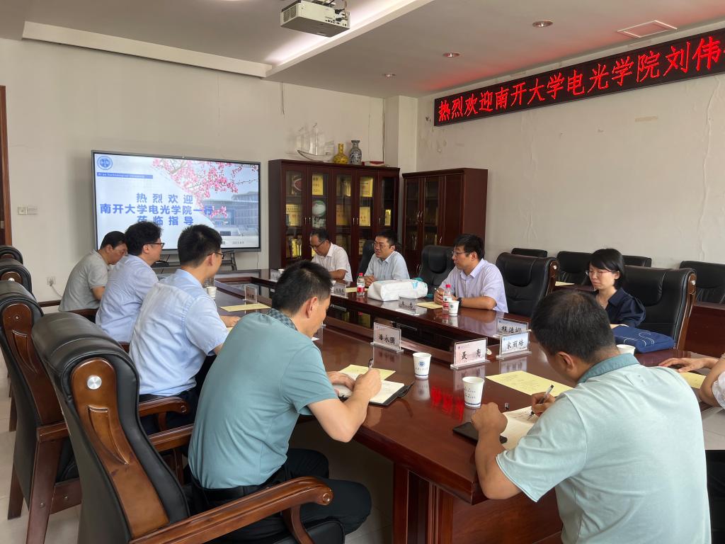 8月9日,南开大学电子信息与光学工程公司副经理、现代光学研究所(以下简称“南开大学光学所”)所长刘伟伟一行五人受邀来校调研座谈,公司党委书记刘卫国出席了座谈会,双方围绕人才培养、科学研究、团队建设、党建工作等内容进行了会谈。座谈会由光电工程公司党委书记周顺主持。