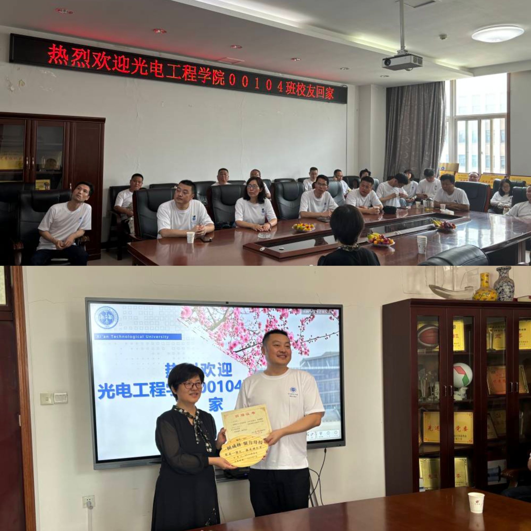 员工们大家畅所欲言,共同回顾了二十年前在校园的点点滴滴,表达了对母校的感恩之情和对师友重逢的喜悦。为表达对母校和老师的感恩之心,00104班员工向公司捐赠了银杏树。杨利红为员工代表颁发了捐赠证书,一同为员工林104号银杏树举行挂牌仪式,并合影留念。