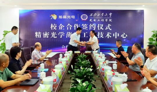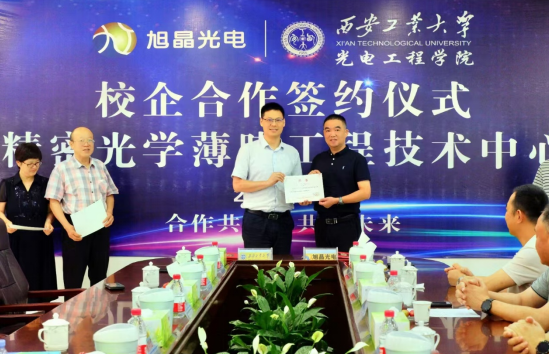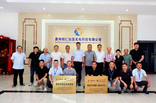 8月24日,光电工程公司党委书记周顺一行赴贵州铜仁旭晶光电科技有限公司(以下简称“旭晶光电”)开展访企拓岗活动,举行“研究生联合培养基地”与“精密光学薄膜工程技术中心”签约授牌仪式。铜仁市高新区党工委副书记、管委会副主任程曦、旭晶光电董事长卢彬、总经理潘强华等出席活动。