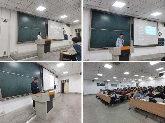 交流会上,两位同学从学科知识竞赛、理论方案竞赛以及实物制作竞赛三大类竞赛展开,为同学们讲述了竞赛中容易遇到的问题。首先邵睿康同学对“互联网+”老员工创新创业大赛进行了讲解,介绍了以互联网为方式对于农业、制造业、文化创新、社会服务等领域进行创新创业的项目,并且介绍了以“厨余宝”为代表的往期优秀作品。结合近期的“挑战杯”竞赛项目,为大家介绍了“大挑”和“小挑”,针对同学们近期的竞赛准备提出了宝贵的建议。随后张维佳同学介绍了“蓝桥杯”,它主要涉及软件开发,程序设计,应用开发等领域,要求对数学、光学、电学、机械设计、编程语言等学科知识有一定的储备,他还从备赛和竞赛方面为大家分享了自己在比赛中遇到的问题和解决方法等。