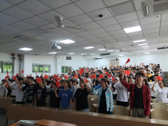 大会开始,同学们全体肃立,迎国旗,升国旗,奏唱国歌,行瞩目礼。习近平总书记发表重要讲话:“一百年来,中国共产党团结带领中国人民进行的一切奋斗、一切牺牲、一切创造,归结起来就是一个主题:实现中华民族伟大复兴......”习近平总书记的发言字字振奋人心,句句铿锵有力,点燃了所有中华儿女的民族自豪感。