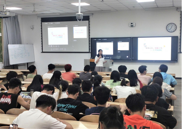 25心理健康活动月之际,为更好地提高员工心理健康关注意识,培养员工有意识地认识自我、探索自我、关爱自我的习惯,学会调节、缓解学习生活中的负性情绪和强压力,提高幸福感,光电学院于5月261900在教2-106举办了“阳光心态 健康人生——5.25我爱我”心理讲座。此次讲座,由公司心育员陈慧英老师主讲。2018级和2019100名同学聆听了讲座。