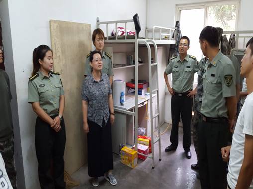 陈副书记一行首先到校武装部,向武装部参训人员表示诚挚的慰问,并就新生军训的相关情况进行了交流。