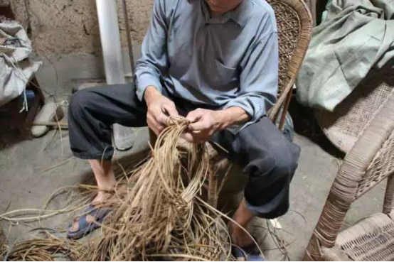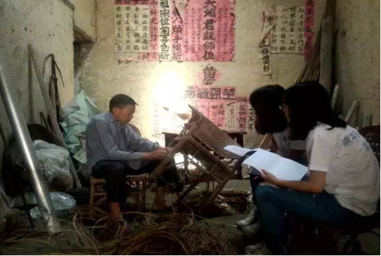 拜访老艺人藤编厂的徐厂长安排我们一行人坐上车前去,老艺人的家中距离藤编厂只有短短几分钟的路程,就在路边很不起眼很普通的一户人家中,我们准备在对他进行专门的采访。虽然屋子里很黑很旧,但依然摆放着很多很多藤编的家具,与出售的比较,这些家具并没有喷漆,是原汁原味的。老艺人如数家珍一般地向我们介绍了一些藤编的基本工具,无一不让同学们感叹,看似普通的家具居然能有如此多令人捉摸不透的神奇作用。