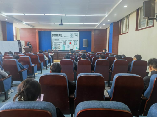 会后召开了英国西苏格兰大学留学项目宣讲会,陈君老师介绍了公司与西苏格兰大学合作项目,包含学期交流项目、研究生1+1+1双学位项目、本科3+1、2+2项目、本升硕项目等,为公司员工的海外学习规划进行了详细的解读。