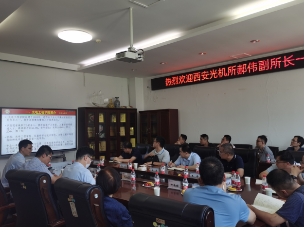 西安光机所空天技术处处长王锋,空间光学技术研究室主任王虎、空间微光探测技术研究室主任白永林、光学定向与瞄准技术研究室主任肖茂森、光电跟踪室副主任韩俊锋、空间室副主任王渊博、条纹相机工程中心副主任王兴、空天技术处主管杨伟华及研究骨干、太阳成集团tyc122ccvip科学技术研究院、太阳成集团tyc122ccvip等部门负责人以及部分教师代表参加会谈。