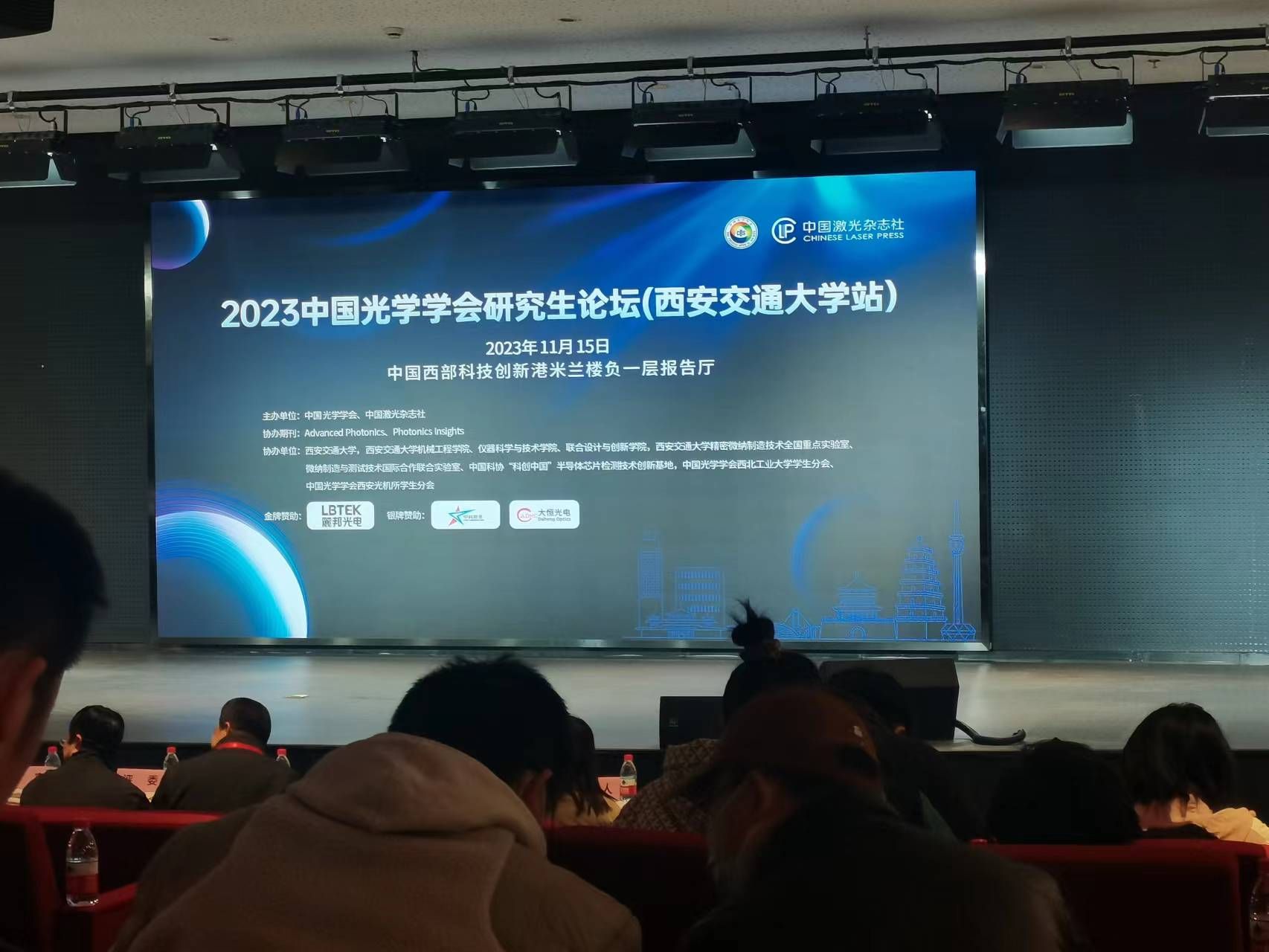 11月15日,中国光学学会研究生论坛(西安交通大学站)在中国西部科技创新港米兰负一层报告厅举行。论坛由中国光学学会和中国激光杂志社主办,西安交通大学、西安交通大学机械工程公司、仪器科学与技术公司、联合设计与创新公司,西安交通大学精密微纳制造技术全国重点实验室、微纳制造与测试技术国际合作联合实验室、中国科协“科创中国”半导体芯片检测技术创新基地,中国光学学会西北工业大学员工分会、中国光学学会西安光机所员工分会协办。
