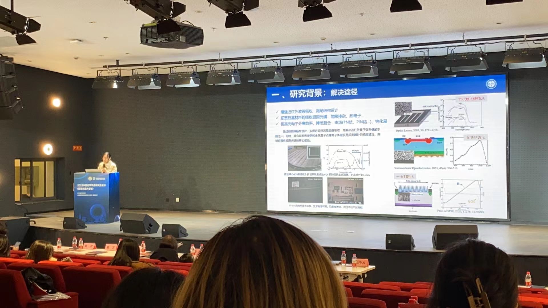 会议分为口头报告和张贴报告两项,并评选优秀口头报告和张贴报告。特邀西北工业大学赵建林教授、西安交通大学张镇西教授、复旦大学周磊教授作学术报告,来自来自西安交通大学陈烽课题组的凯林等17位同学作口头学术报告交流。太阳成集团tyc122ccvip‍‍‍‍‍‍‍‍梁海锋课题组的博士生黄玉婷作“热电子增强的纳米线硅基光电探测器研究”口头汇报并获得优秀口头报告,另外硕士生王思淇、王甜、薛一梦和鲁康富4位同学获得优秀张贴报告。